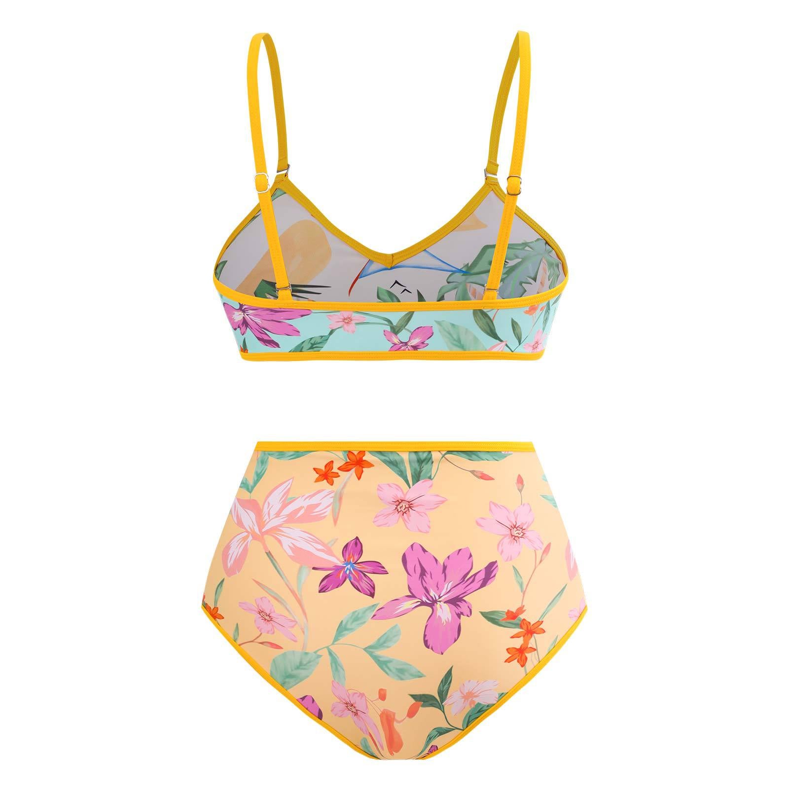 Floral High-Waisted Bikini with Matching Sarong – Tropical Beachwear Set