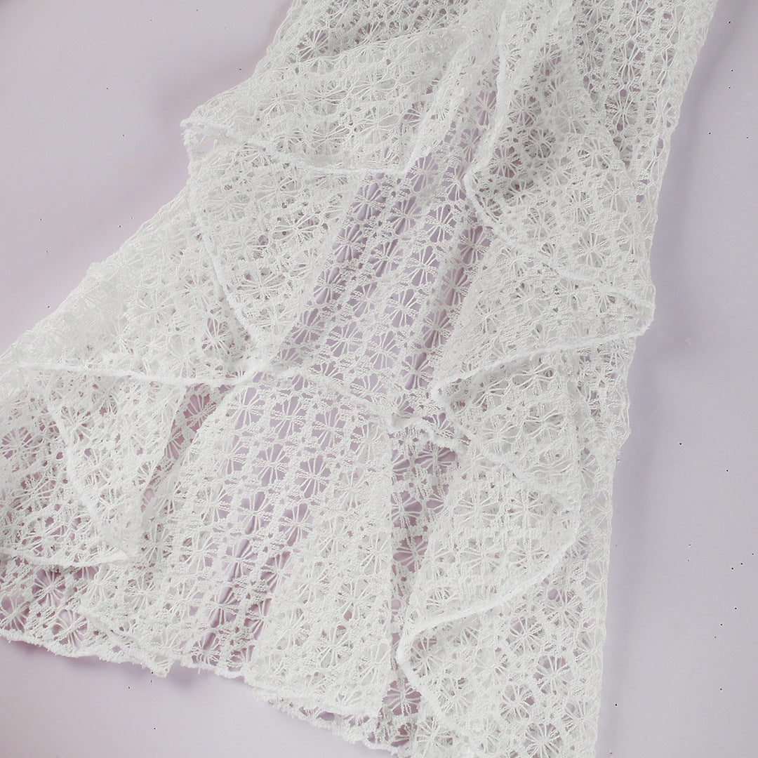 • Sarong: Sheer Lace Flared Pants with Ruffle Hem